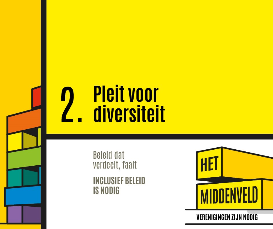 Mensen geven mee de democratie vorm en zijn in hun doen en laten – al dan niet bewust – per definitie ‘politiek’ bezig. Ze zijn niet louter ‘klant’ of ‘afnemer van diensten’ en organiseren zich voor talloze kwesties in grotere verbanden. Betrek die burgers en organisaties actief bij (grote en kleine) beslissingen en durf je te laten uitdagen. Heb specifieke aandacht voor organisaties van mensen wiens stem zelden gehoord wordt. Beschouw hen als kritische partners, waardeer hun expertise en geef hen verantwoordelijkheid in plaats van het initiatief over te nemen, hen te instrumentaliseren, te betuttelen of te demotiveren met overbodige of onaangepaste regels.
